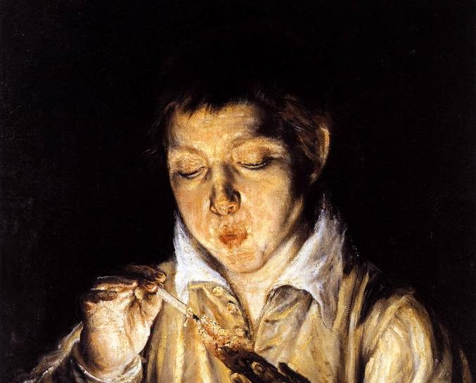 A Boy Blowing on an Ember to Light a Candle,El Greco