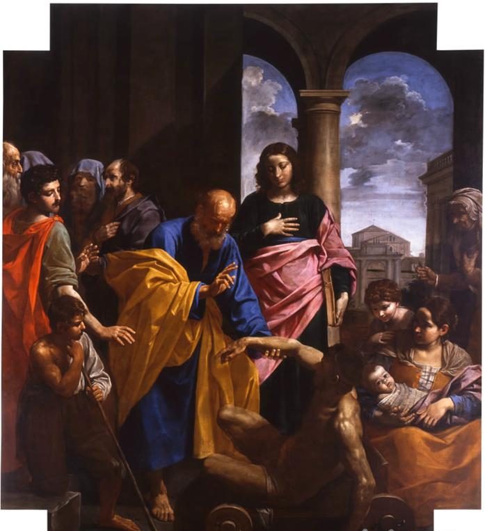 我想起四人抬着瘫子到主面前的那天,众人为了听主的讲道,现场挤得水泄不通,他们一行人便拆了屋顶,把人从屋顶缒下。阳光照在瘫子脸上,表情无助。主俯身对着那人,第一句话不是“起来”,而是“小子,你的罪赦了”。
